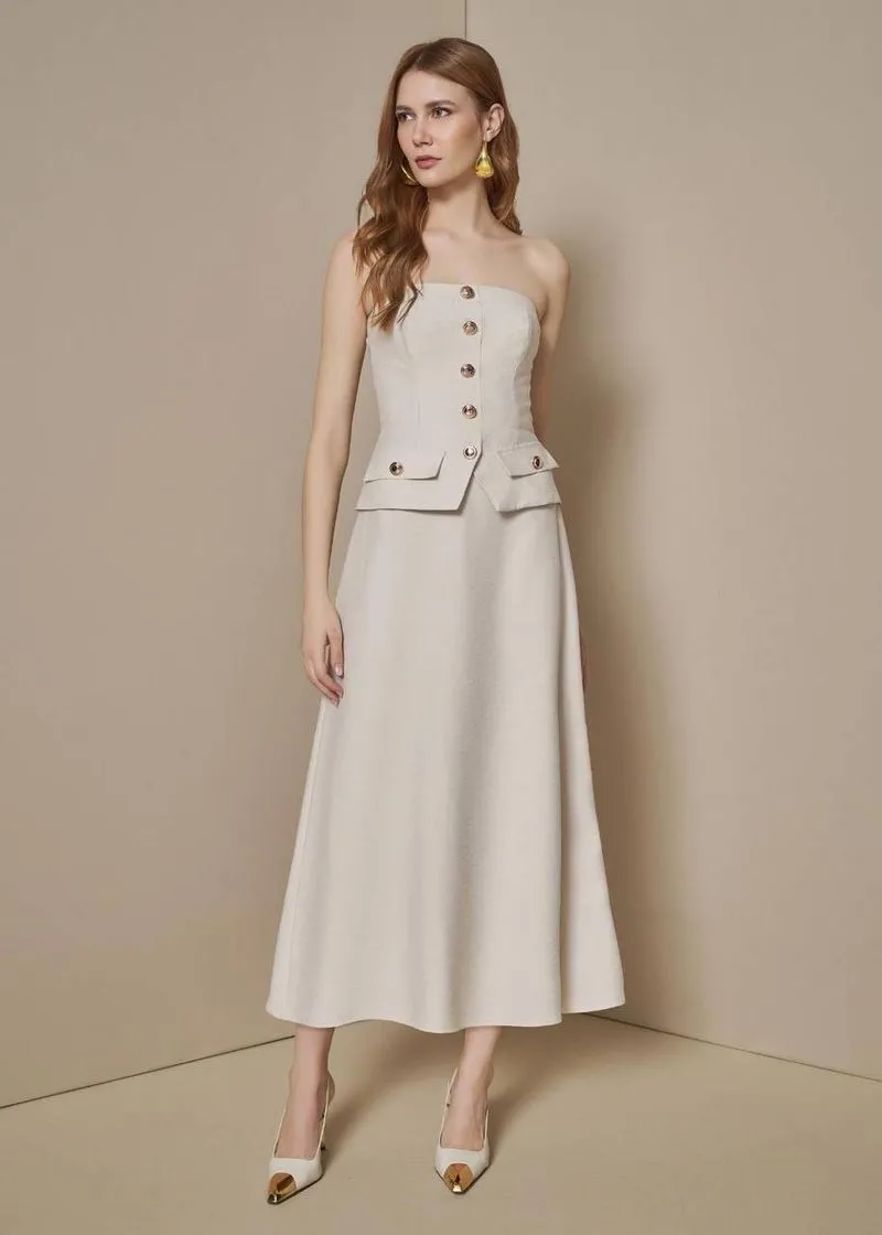 O Vestido Midi de Botões em Alfaiataria combina sofisticação e funcionalidade em uma única peça. Com seu corte elegante e detalhamento em alfaiataria, este vestido é perfeito para ocasiões formais ou momentos que pedem um toque refinado.